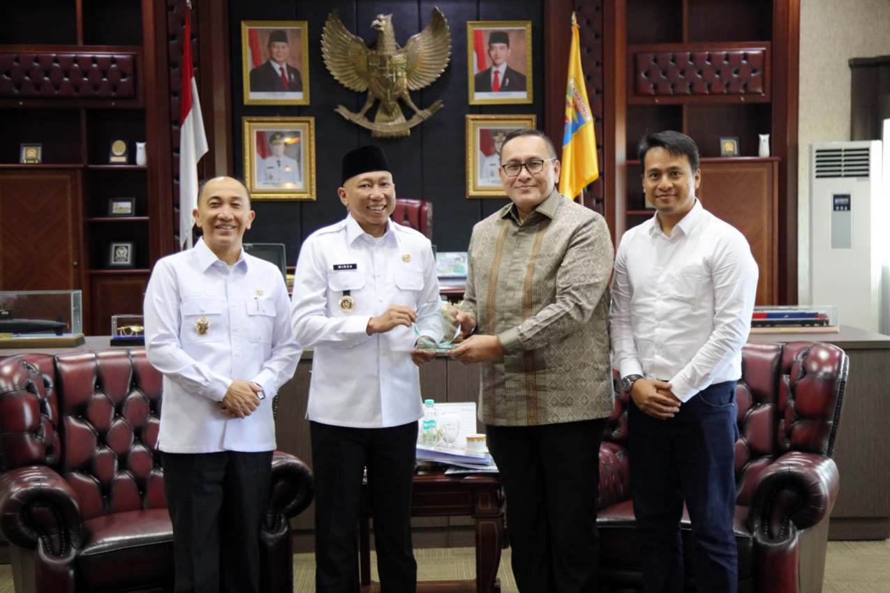 MATAMATA.ID – Gubernur Lampung Rahmat Mirzani Djausal menerima investor Malaysia Cita Global, perusahaan energi terbarukan yang berminat mengembangkan proyek pengolahan sampah menjadi energi (waste-to-energy) dan pembangkit listrik berbasis limbah pertanian, di Ruang Kerja Gubernur, Bandarlampung, Rabu, 16 April 2025.