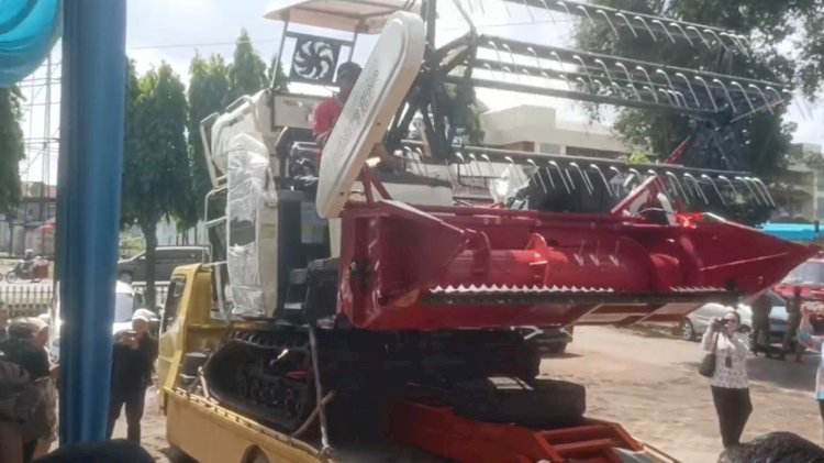 MATAMATA.ID – Pemerintah Kota Bandar Lampung melalui Dinas Pertanian terima bantuan alat mesin pertanian combine harvester besar dari Kementerian Pertanian RI, di dinas setempat, Jumat 13 Juni 2025.