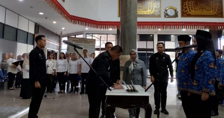 MATAMATA.ID – Sekretaris DPRD Lampung, Descatama Paksi Moeda, atas nama Pemerintah Provinsi Lampung mengangkat sumpah/janji 78 tenaga honorer lingkungan DPRD Lampung menjadi ASN PPPK di Lobi Kantor DPRD setempat, Rabu (30/7/2025).