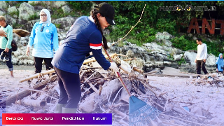 Usai apel, Zita bersama rombongan turun langsung memunguti sampah di sepanjang garis pantai hingga ke area Goa Minang Rua. Meski terik matahari cukup menyengat, semangat kebersamaan tidak surut.