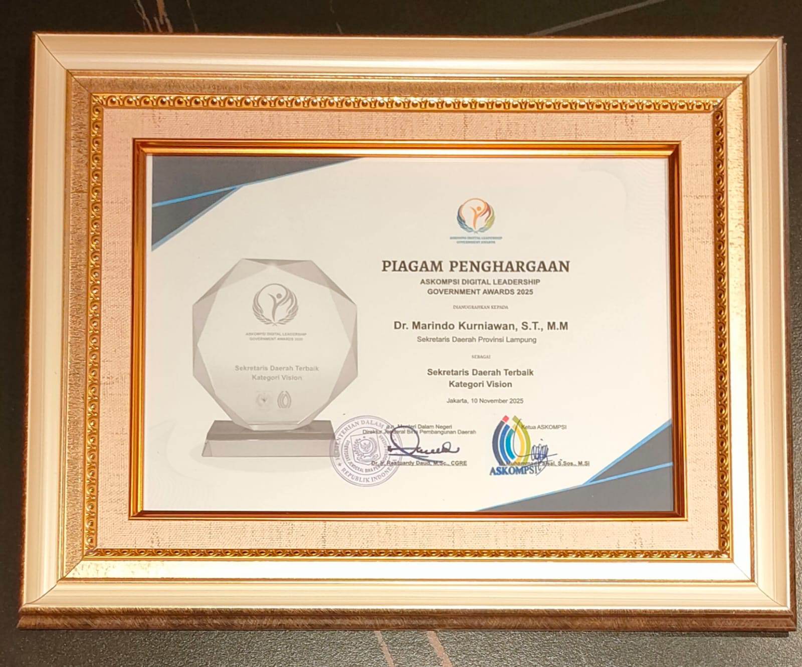 MATAMATA.ID – Sekretaris Daerah Provinsi Lampung Dr. Marindo Kurniawan, S.T., M.M, mendapatkan predikat sebagai Sekda Terbaik di Seluruh Indonesia.