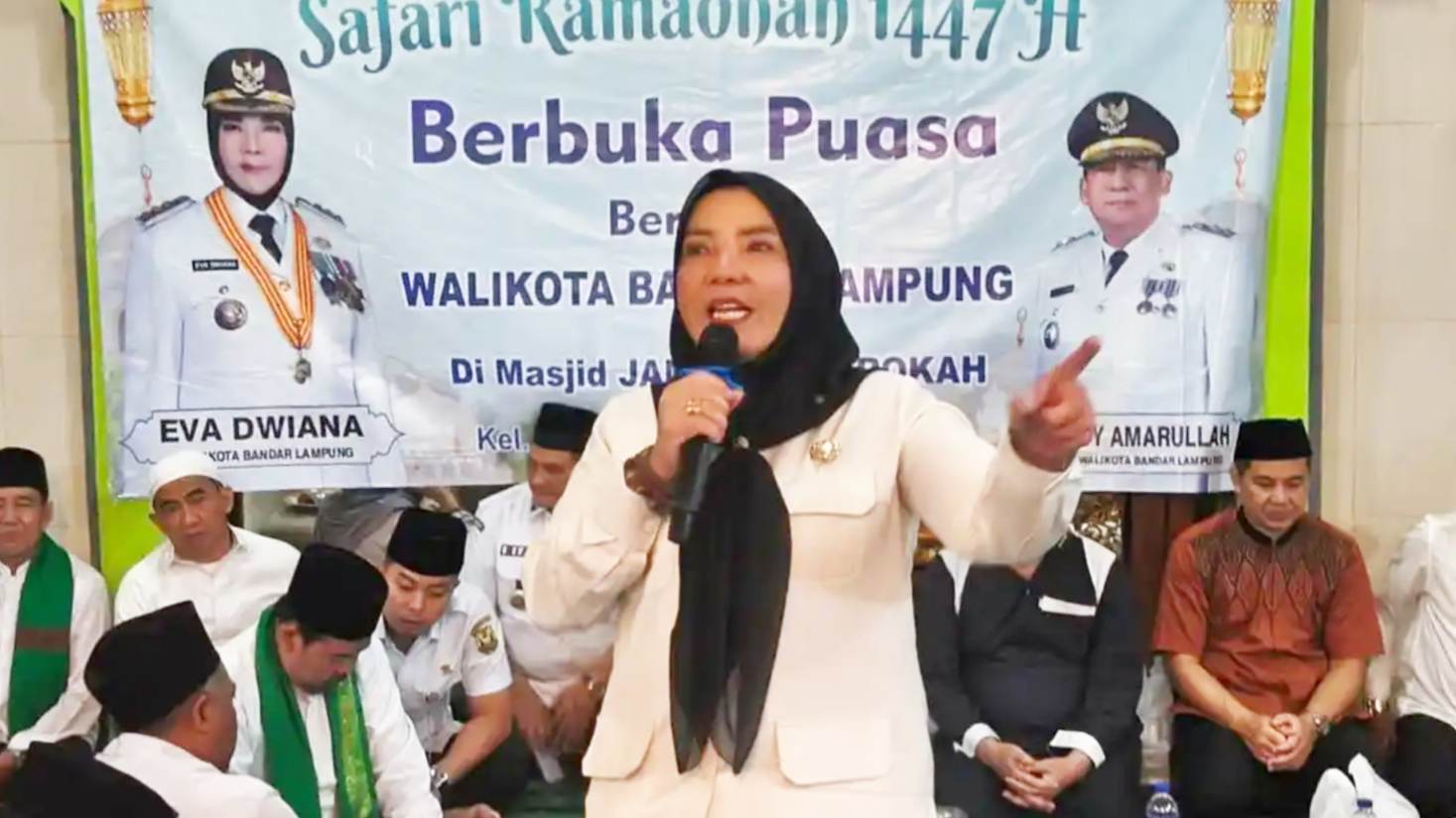 MATAMATA.ID – Wali Kota Bandar Lampung, Eva Dwiana, menyalurkan bantuan sebesar Rp50 juta untuk Masjid Al Barokah yang berlokasi di Kelurahan Campang Jaya, Kecamatan Sukabumi, Kota Bandar Lampung, Rabu, 4 Maret 2026.