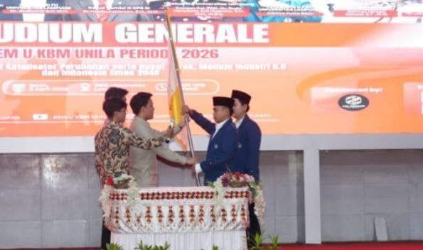 MATAMATA.ID – Badan Eksekutif Mahasiswa Universitas (BEM U) Keluarga Besar Mahasiswa Universitas Lampung (Unila) resmi dilantik melalui rangkaian kegiatan Studium Generale di Gedung Serbaguna (GSG), Senin, 6 April 2026.