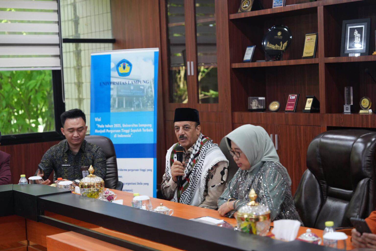 Prof. Lusi dalam sambutannya menyampaikan, Unila telah menjalin hubungan baik dengan Palestina, salah satunya melalui penerimaan mahasiswa asal Palestina, serta menegaskan komitmen Unila yang terbuka terhadap berbagai bentuk kolaborasi dengan institusi internasional.